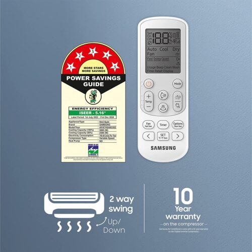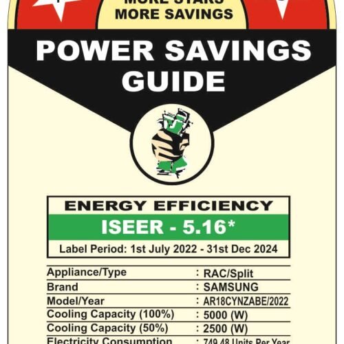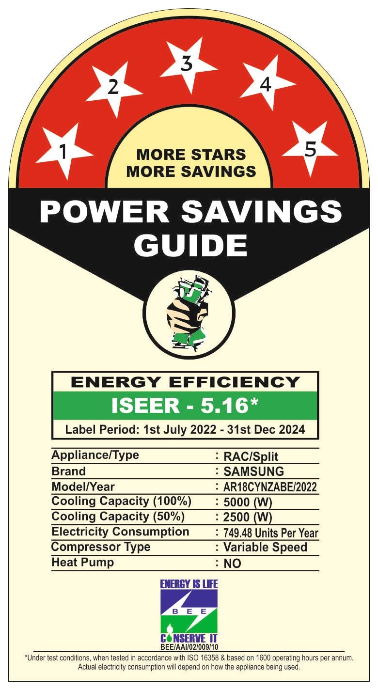 - Energy Rating: 5 Star BEE Rating with Power Saving Mode | ISEER rating of 5.16 W/W (better than industry benchmarks | Electricity Consumption : 749.48 Units Per Year