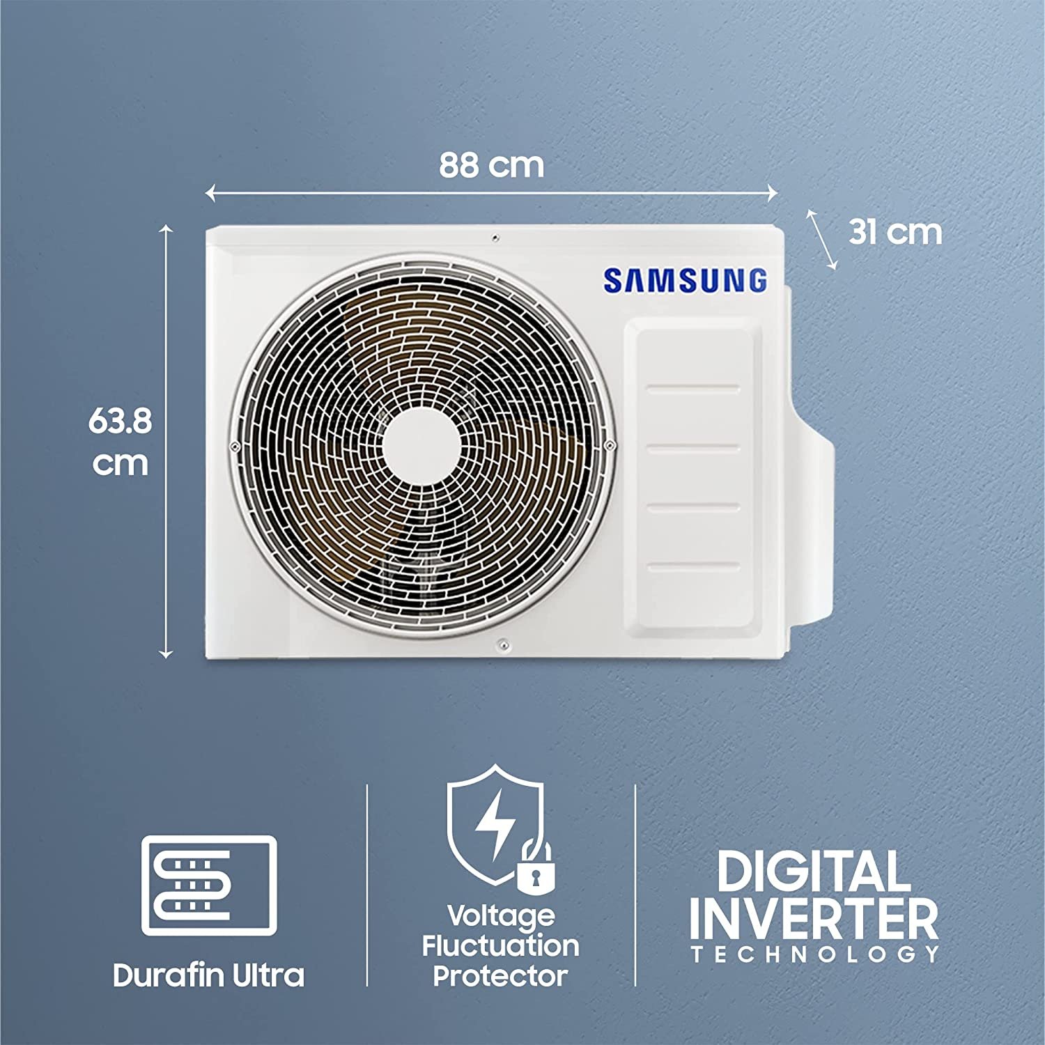 - Special Features: Fast Cooling, Durafin Ultra, Triple Protection Plus, Digital Inverter Technology