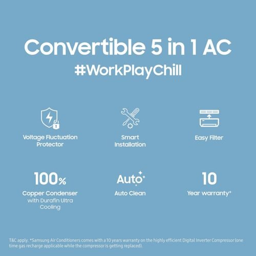 - Split AC with inverter compressor: Variable speed compressor which adjusts power depending on heat load. With Convertible 5in1 modes, you can change according to your mood and requirement
